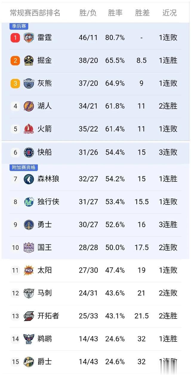 赛后,西部排名再生变数,掘金升至第2,快船仍第6,森林狼稳住第7;勇士距前6仅一个胜场差。
